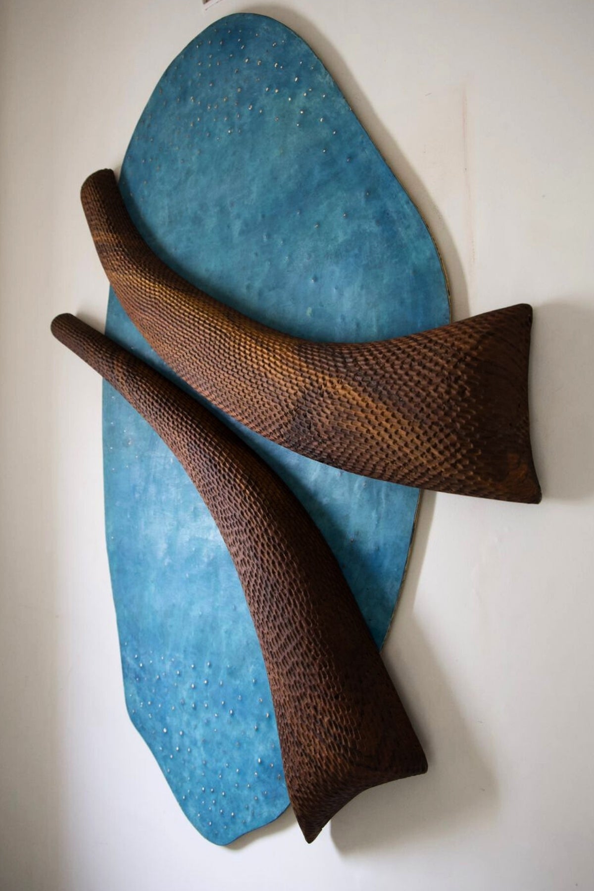 A surrealist piece depicted elephant tusks reaching towards the cosmos, symbolizing the connection between the earthly and celestial aura.