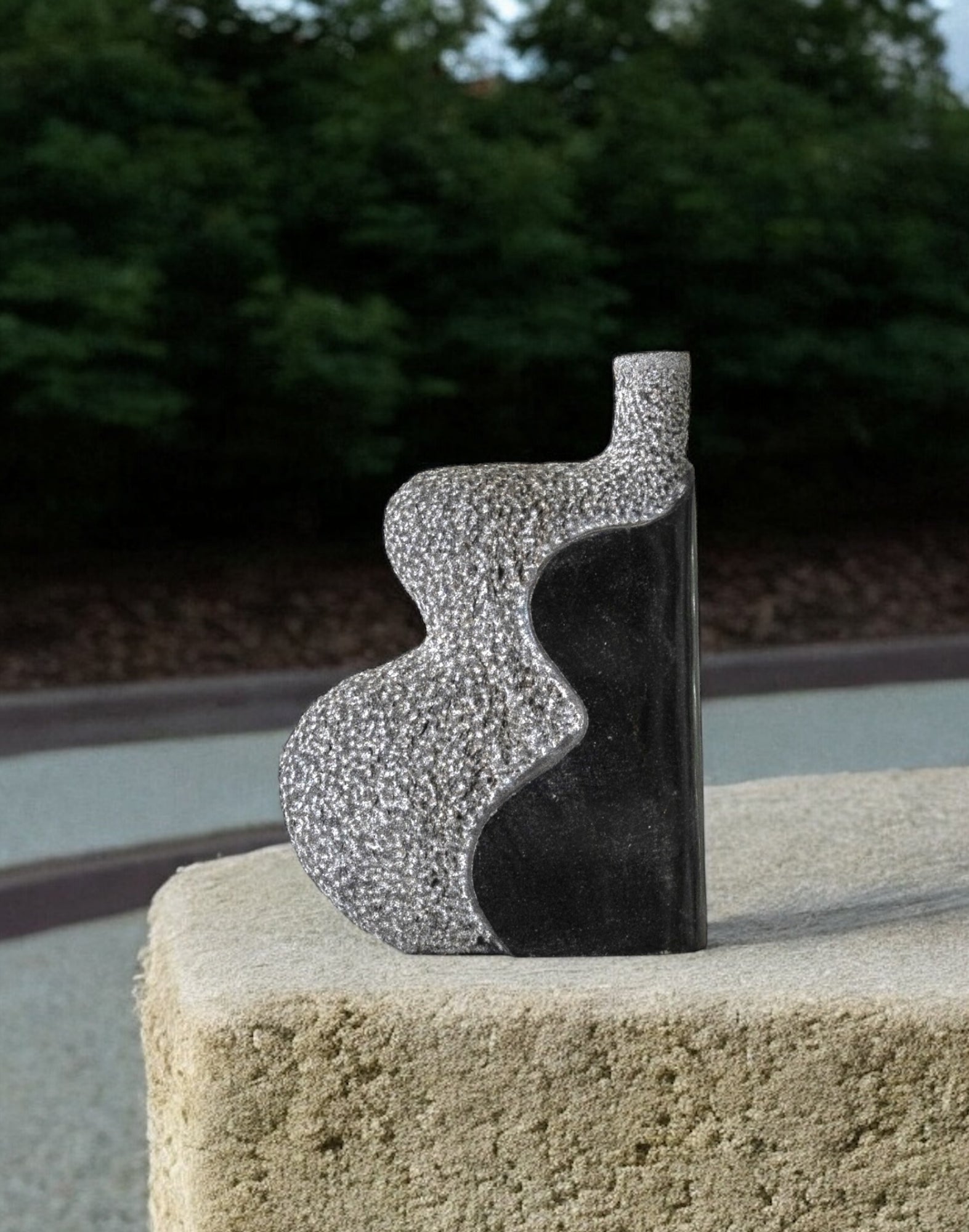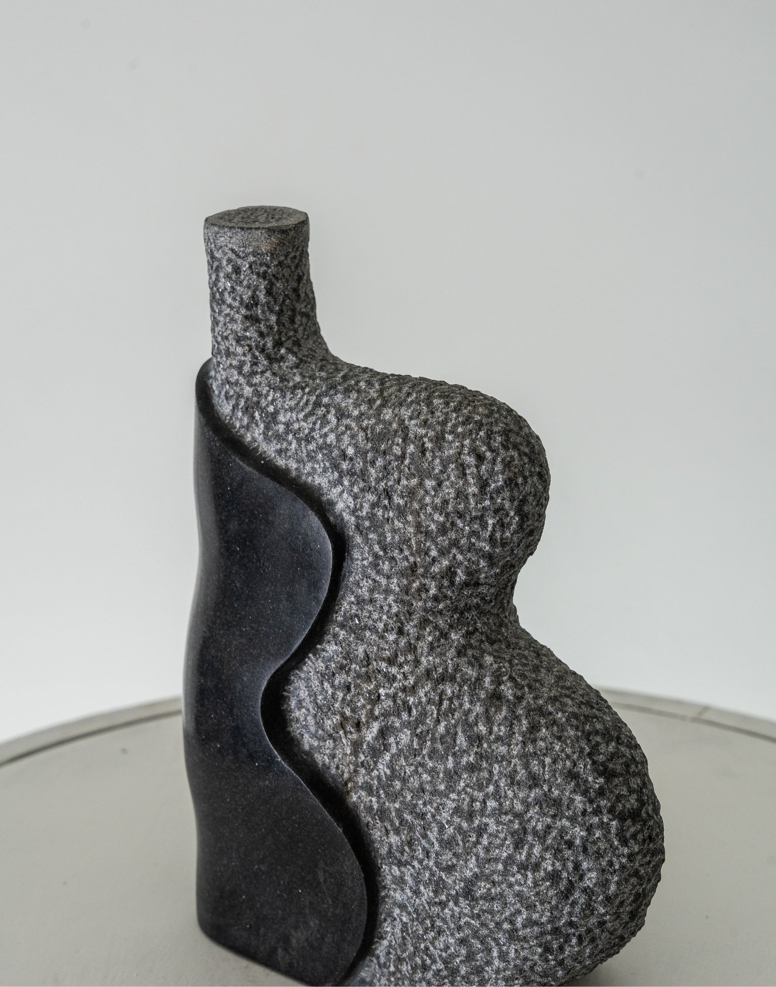 This sculptural piece in black stone that carries quiet strength, from the hands of the artisan to the shelf of a collector. Its organic form, softened curves, and contrasting finishes make it feel both contemporary and timeless. Made to order and hand finished.