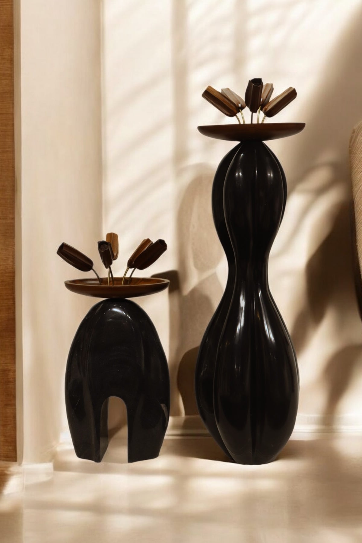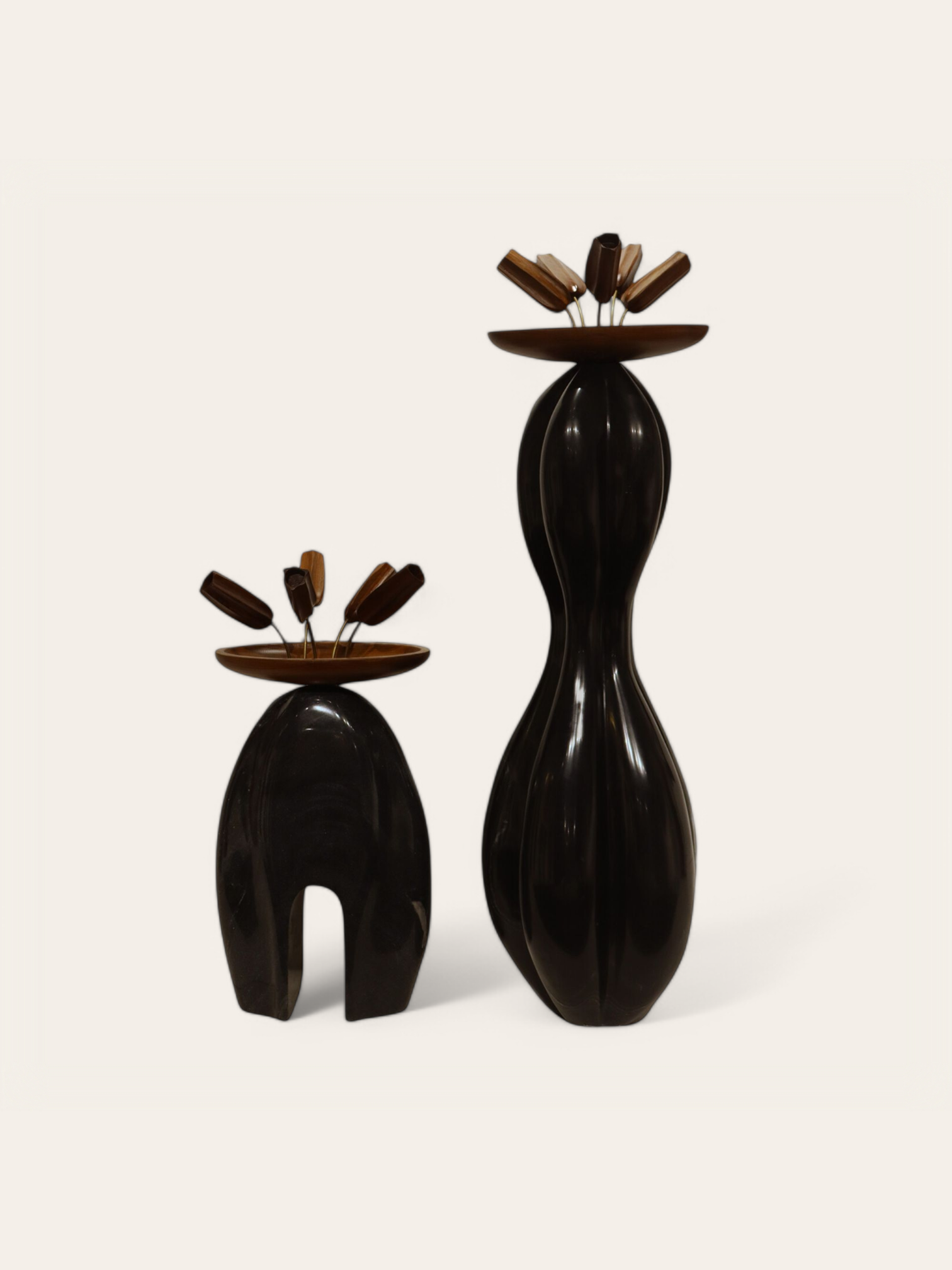Sculptures representing the forest. The blend of the animal and human figure on the bases reinforces our interconnectedness with the natural world.