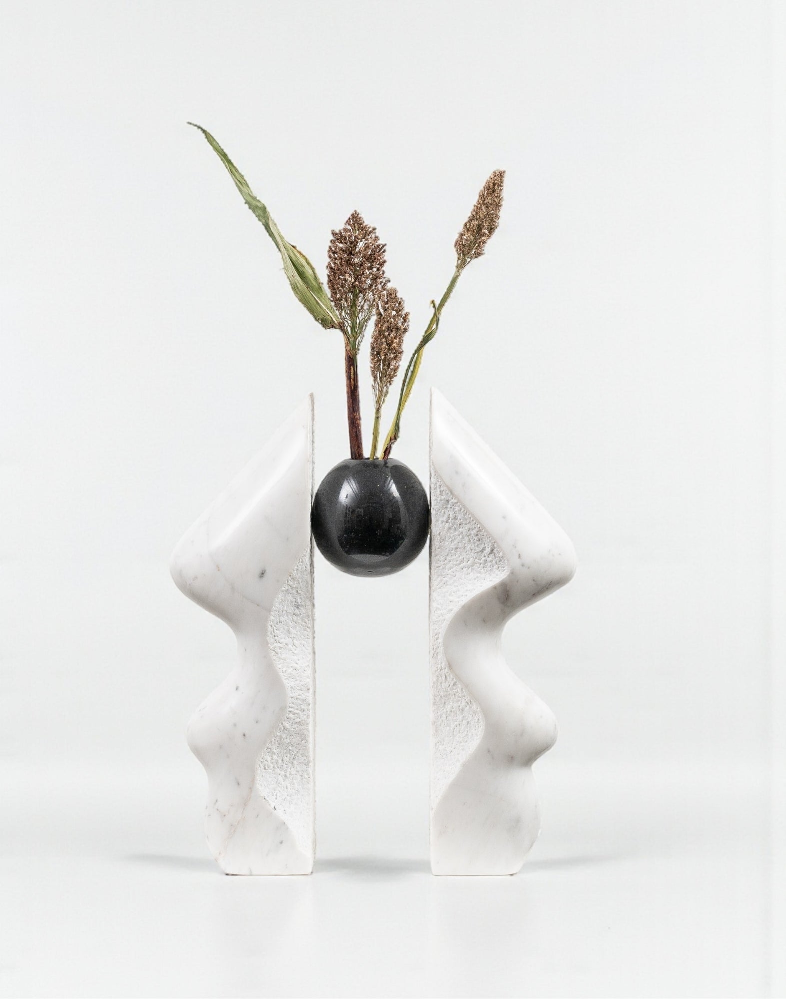 INIKA 06 is shaped by the idea that we form a deeper connection with objects that reflect the natural world. It captures this through contrast, combining blocks of black marble with both textured and polished surfaces to create tension between the raw and the refined. The form is irregular but carefully planned, emphasizing the material qualities.