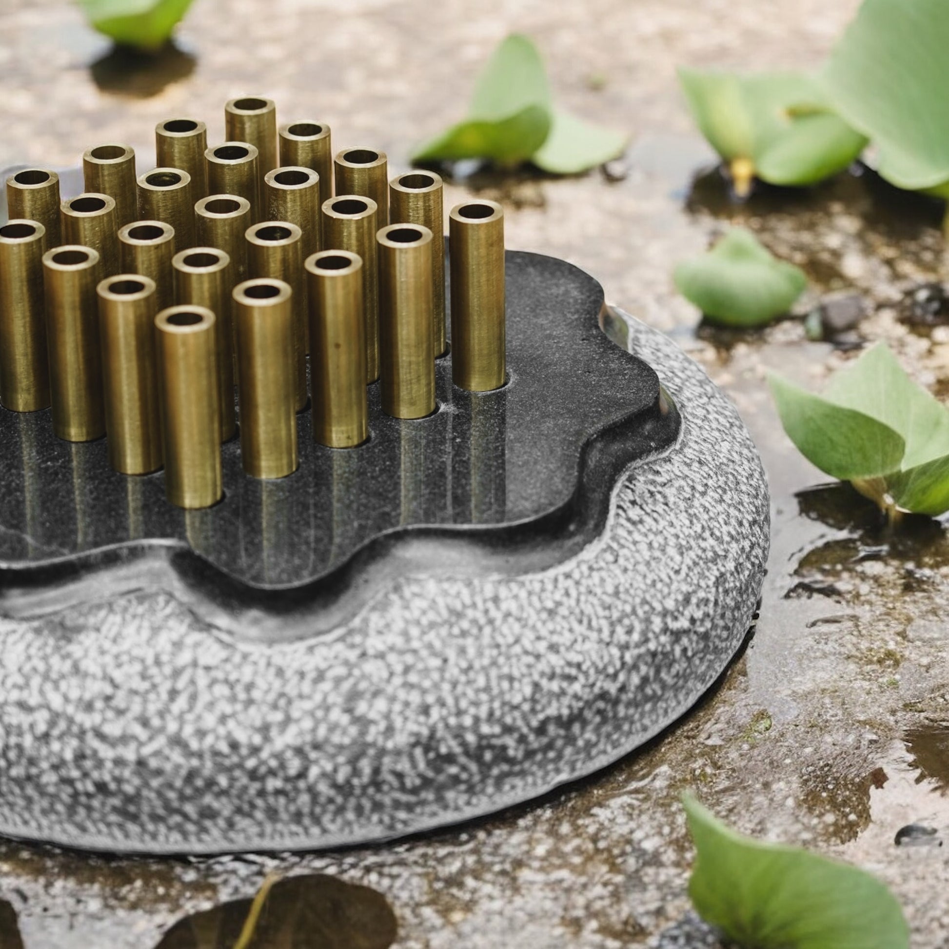 This piece made out of brass and stone arose from the study, observation and contemplation of natural phenomena and natural forms.