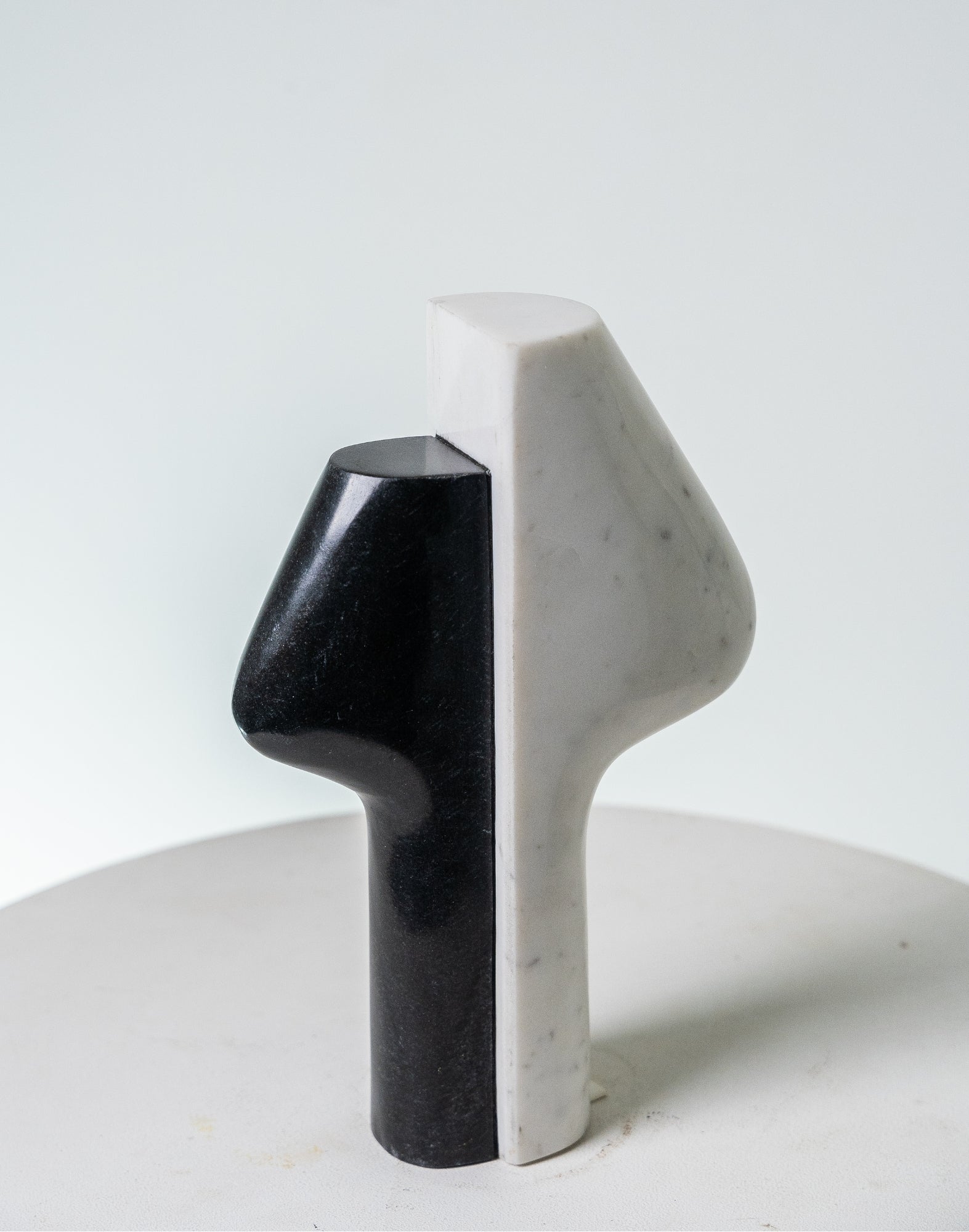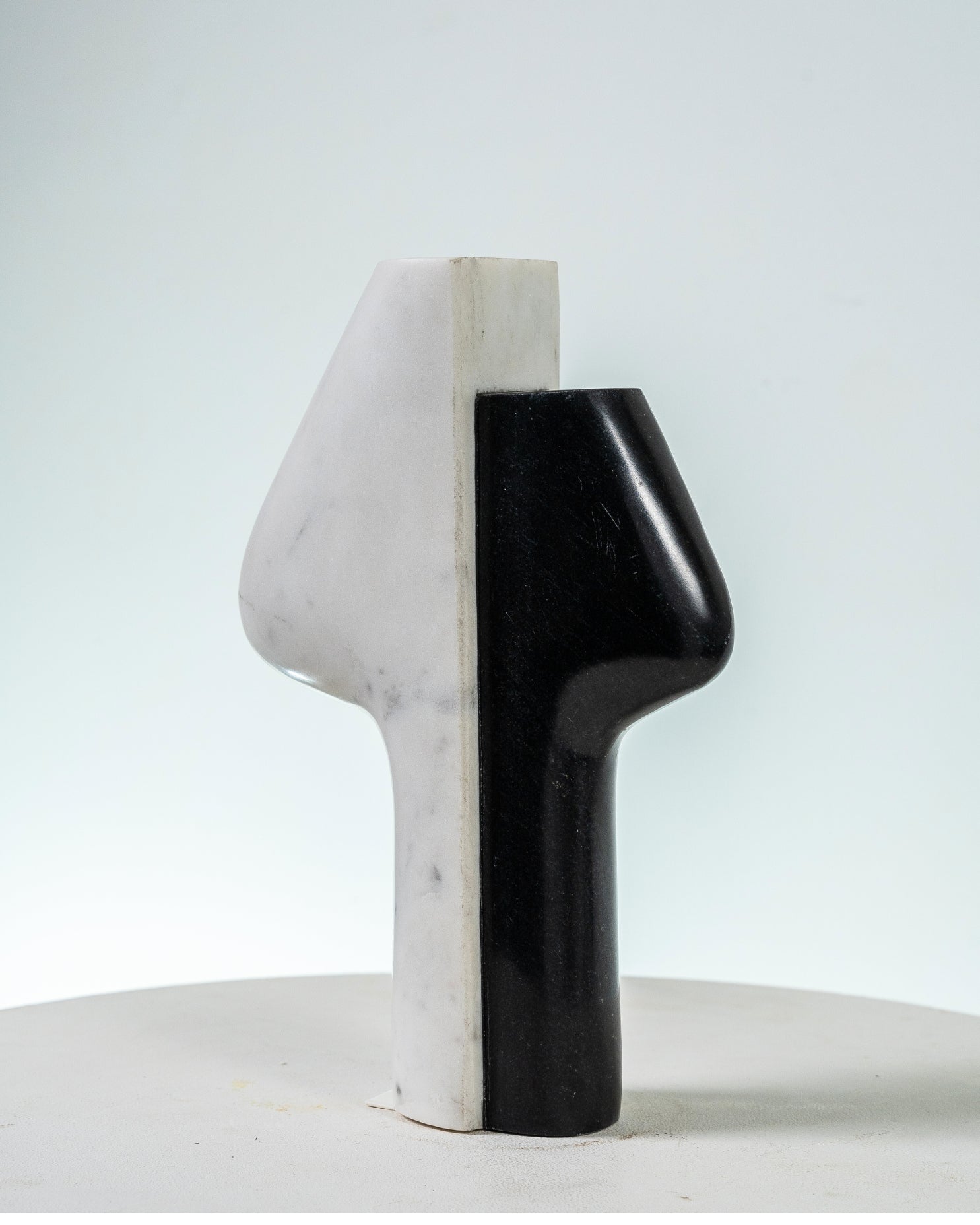 Crafted from black and white marble, the contrast between the two stones gives the piece a strong, defined presence without feeling heavy.