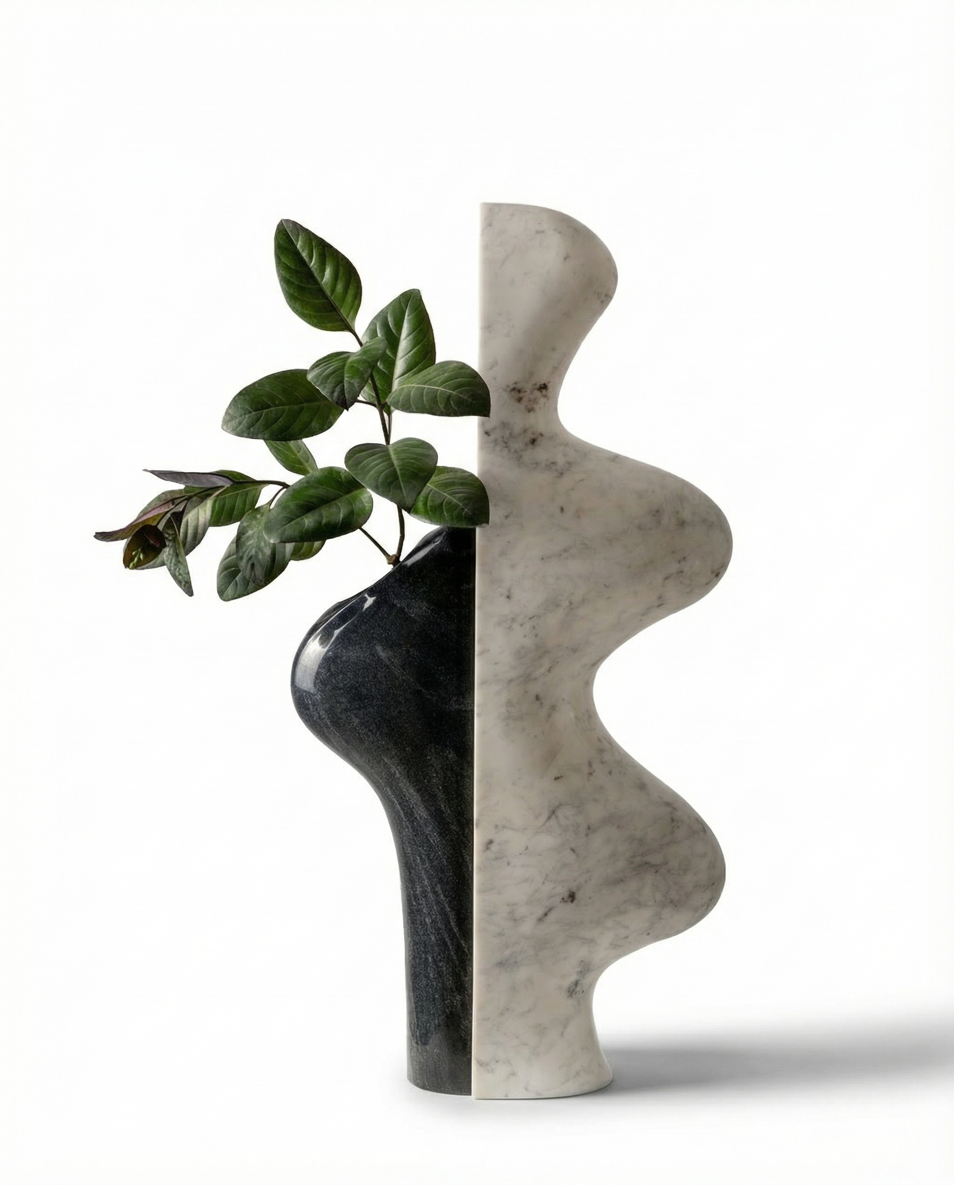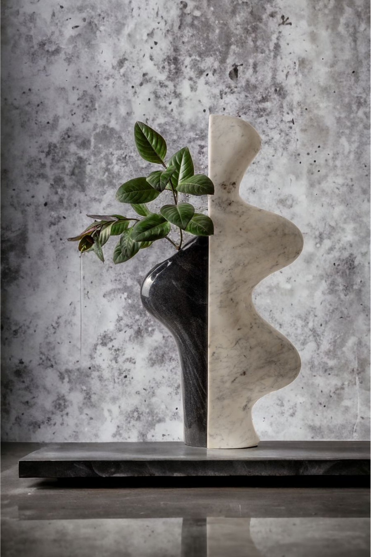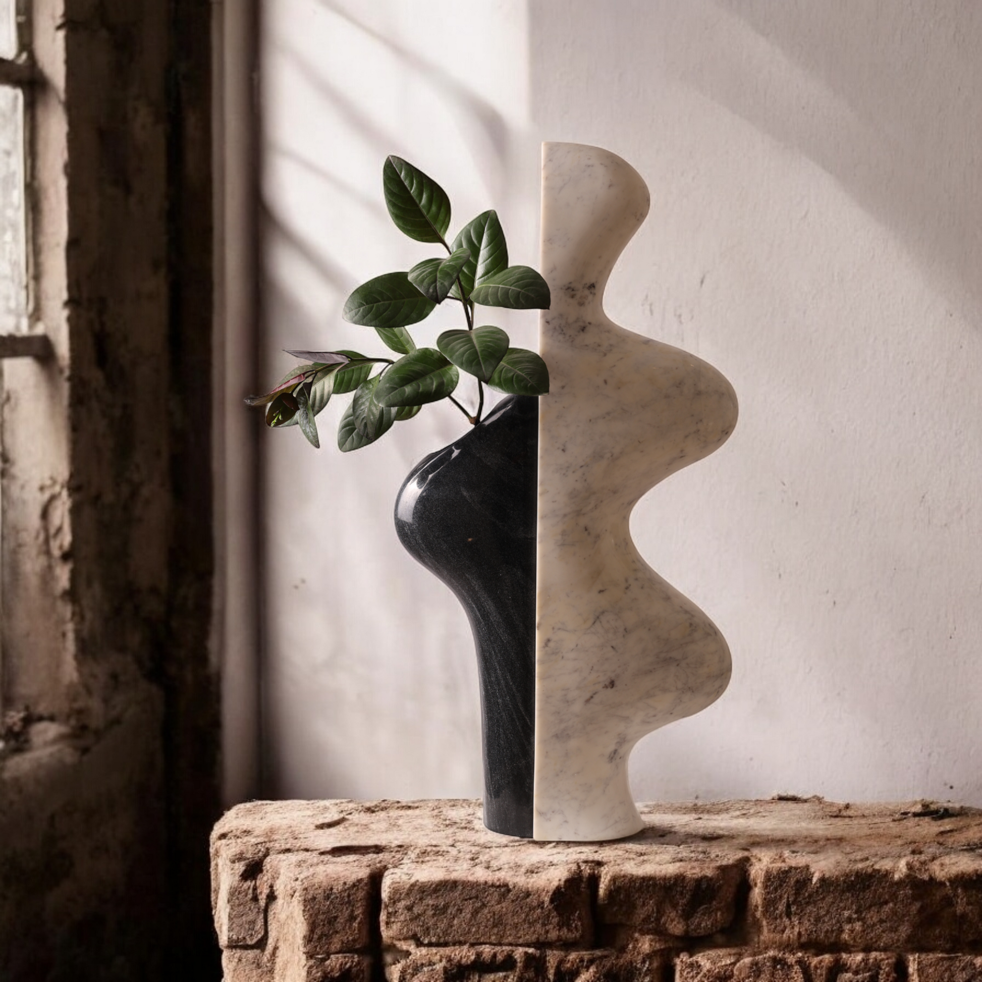A visionary approach breathes life into the stark duality of black and white marble, transforming these classic elements into a symphony of modernity and sophistication. This sculpture stand as bold statements in contemporary design, transcending boundaries and leaving an indelible mark on the world of art and aesthetics. Comes with a small pocket to place plant.