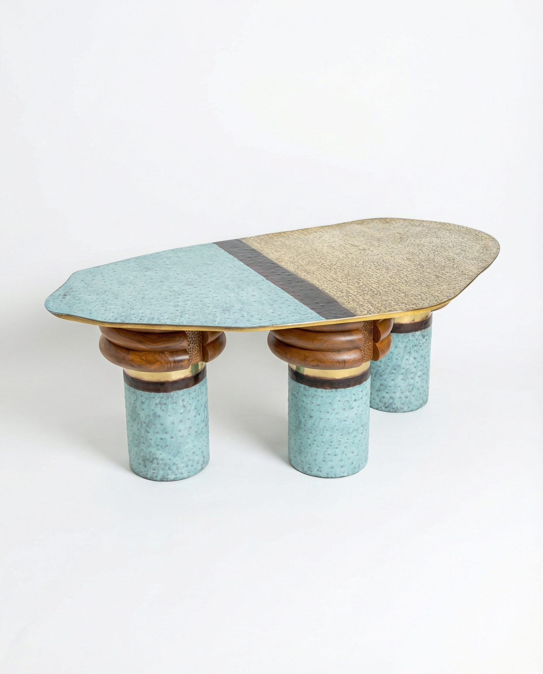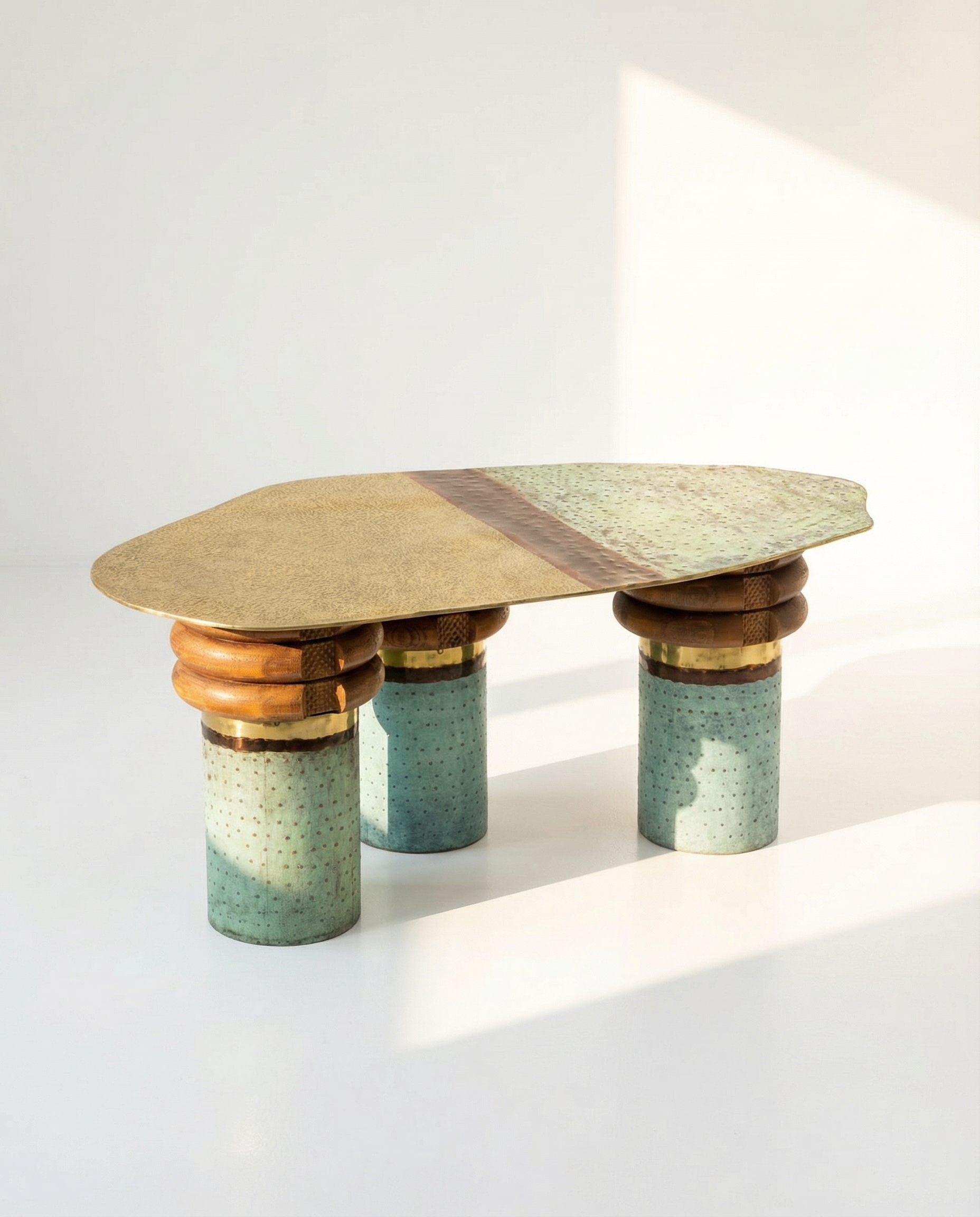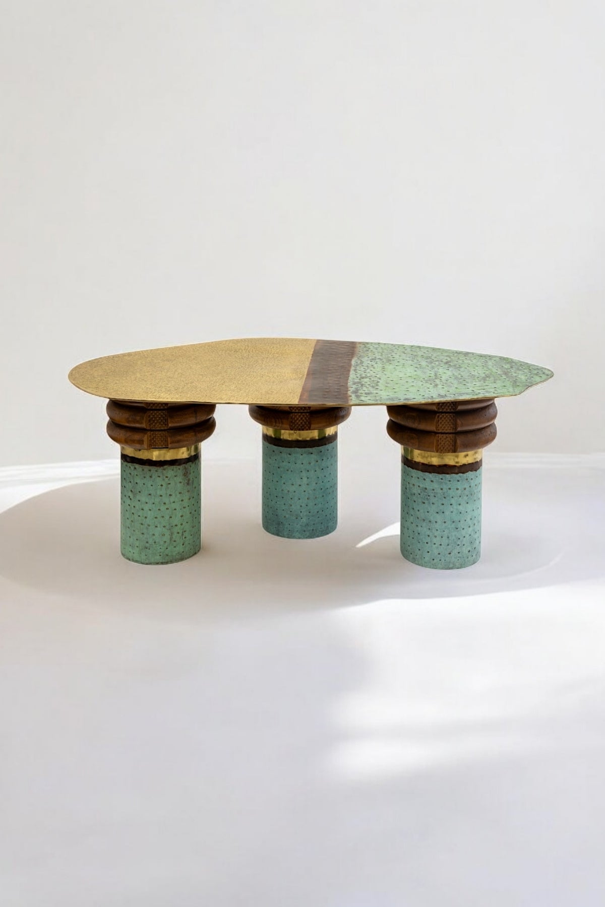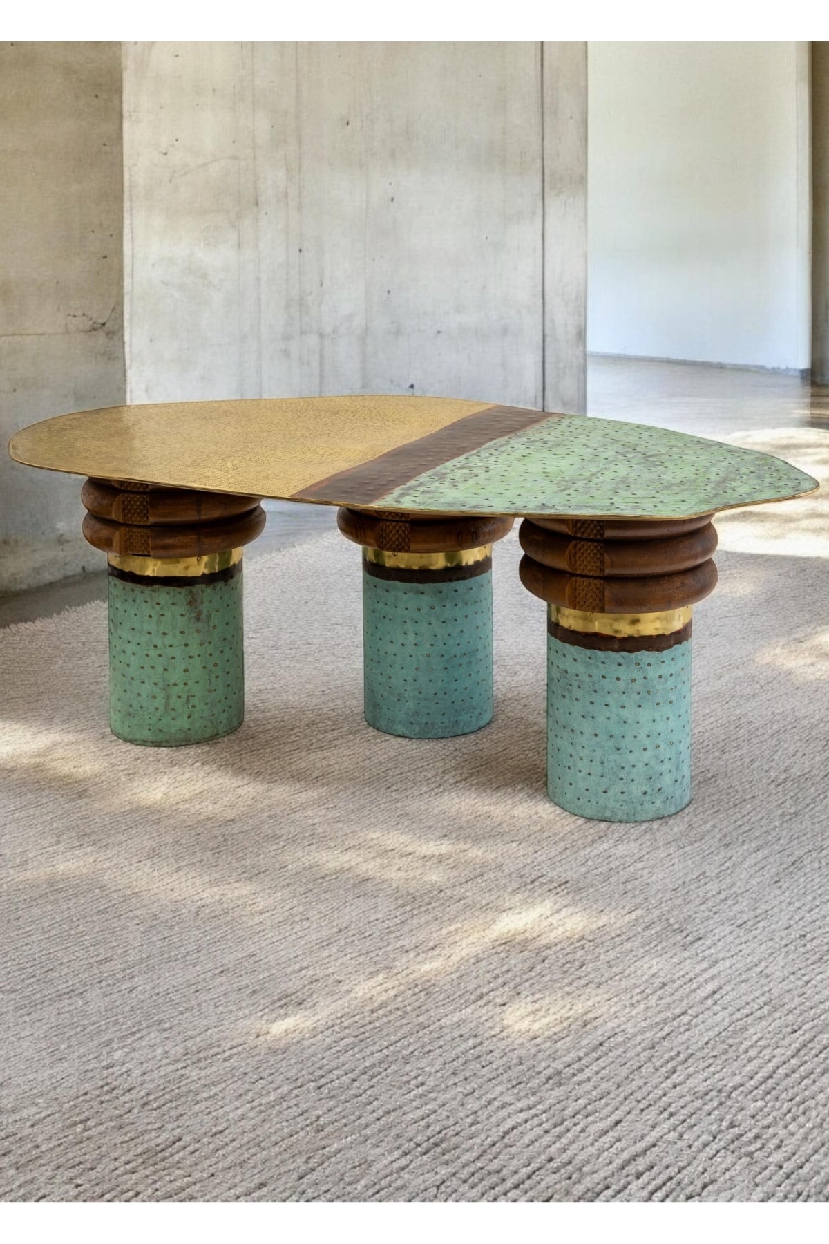 A Centre table represent the transition from a sunlit clearing to a dense, and green and subtle brown evoke the feeling a forest or a serene landscape create a connection to the natural world .