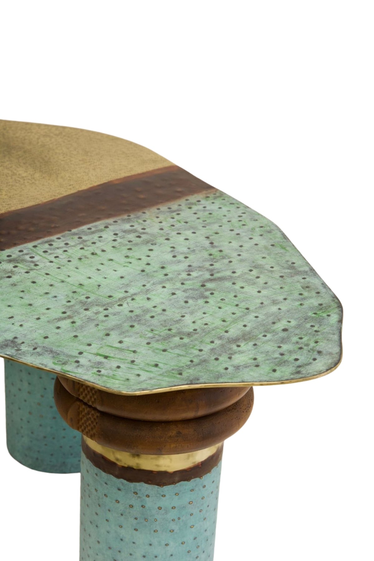 Clean with dry cloth. Natural Variation of grains and colours in wood and marble are not defects. We use reclaimed teak wood, which may have nail pots and cracks, which will be filled during polishing or kept as it is depending on the designer’s choice for the aesthetic. Brass may get dull or change colour with time or with oxidation, this is a natural tendency of the material.
