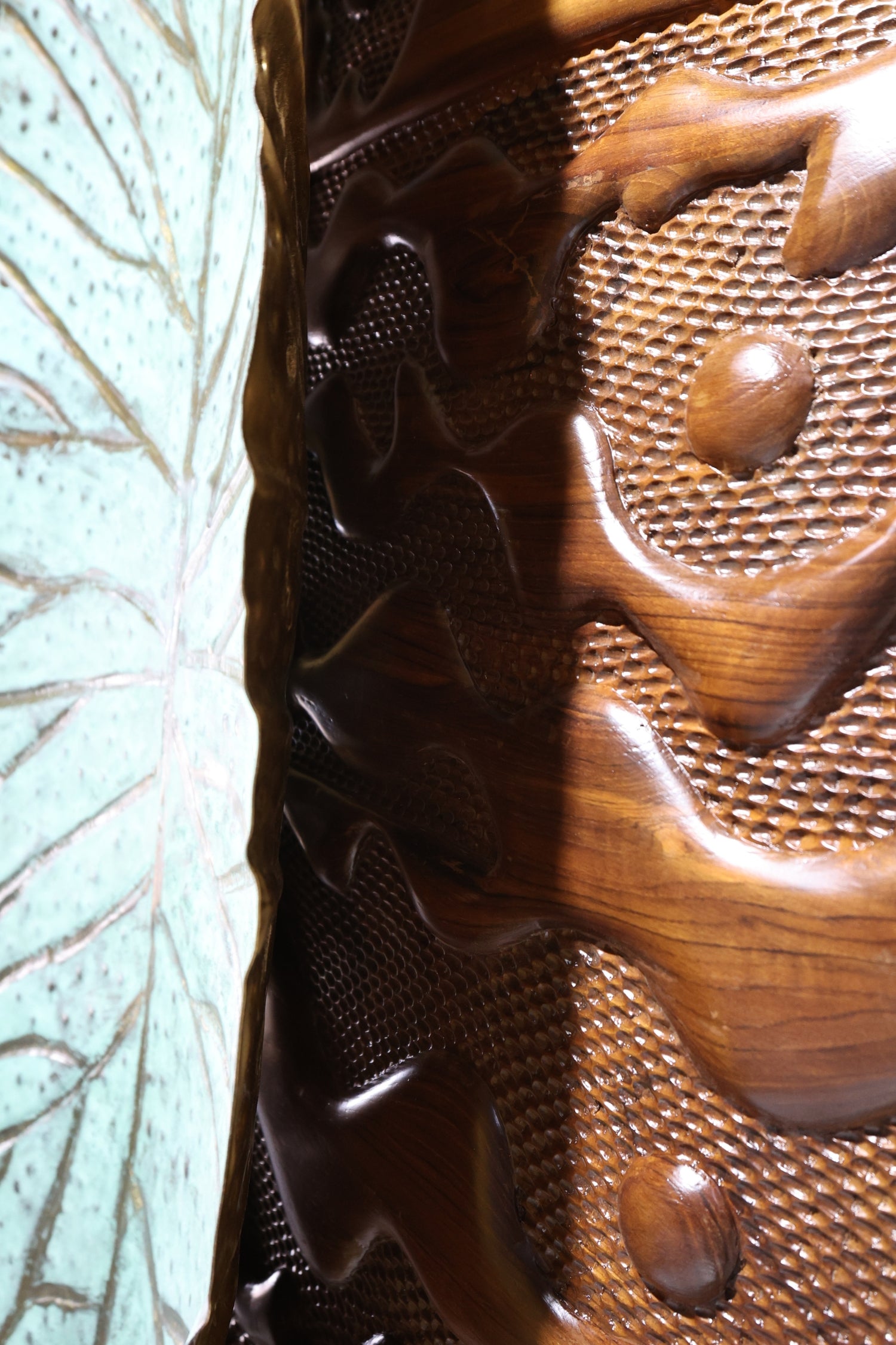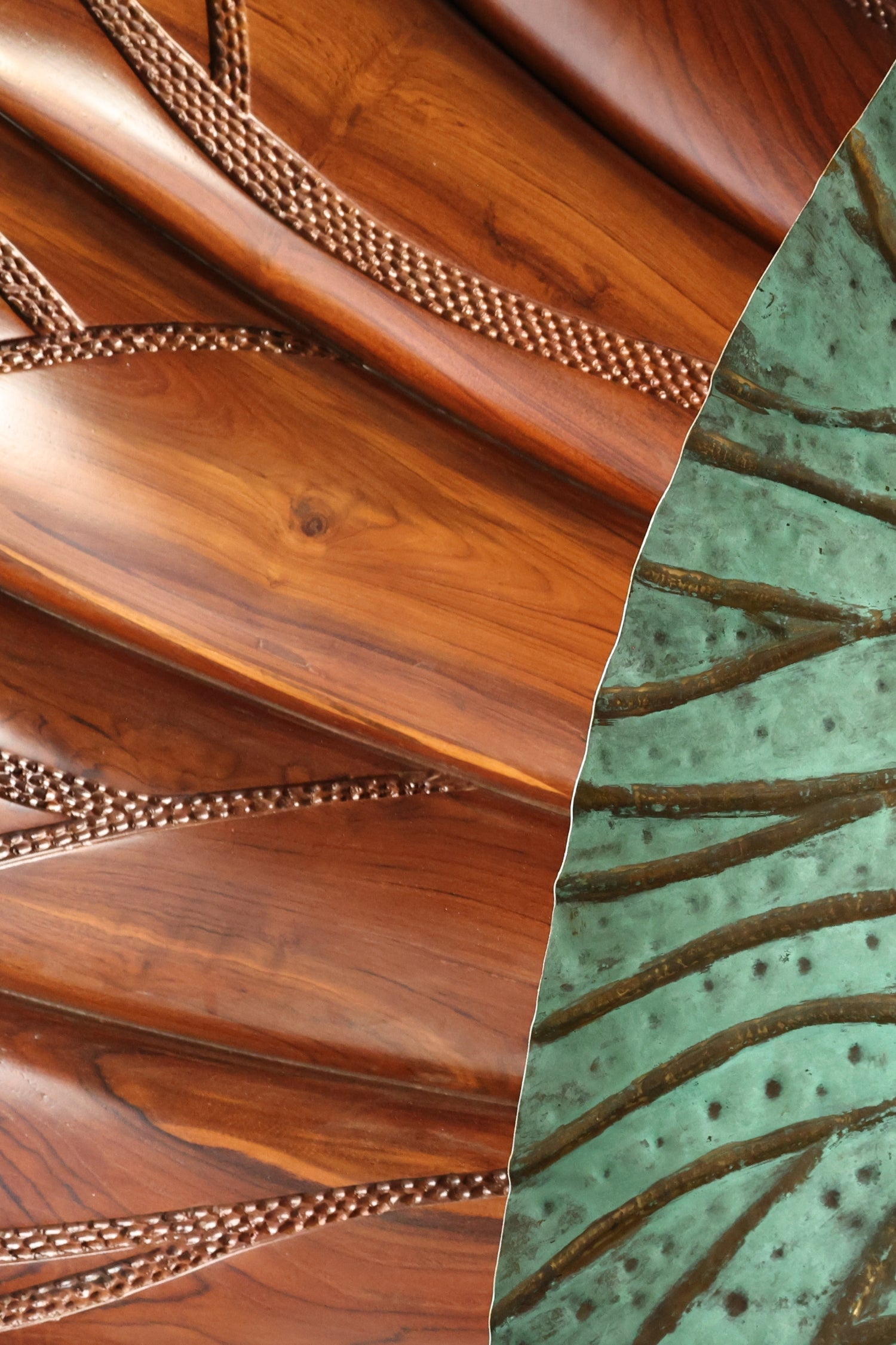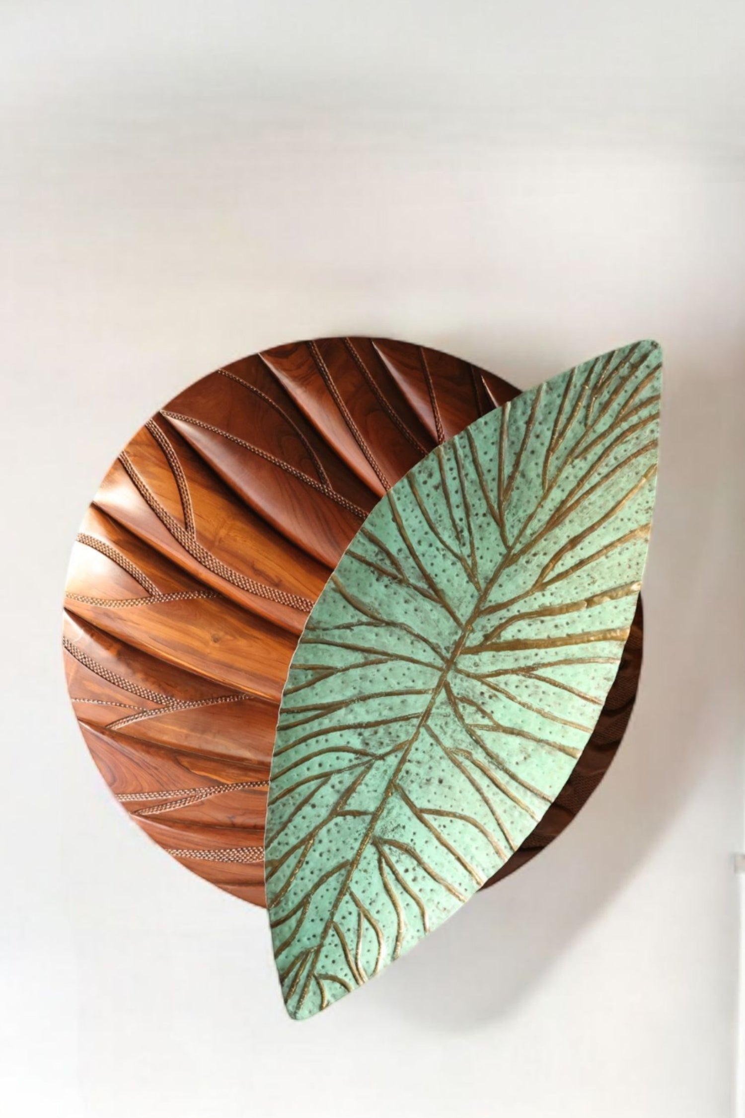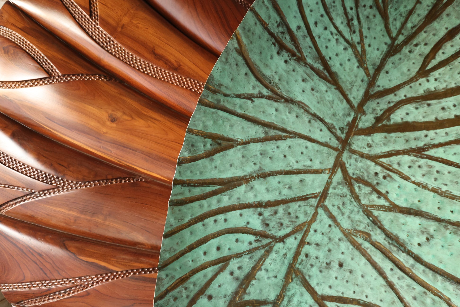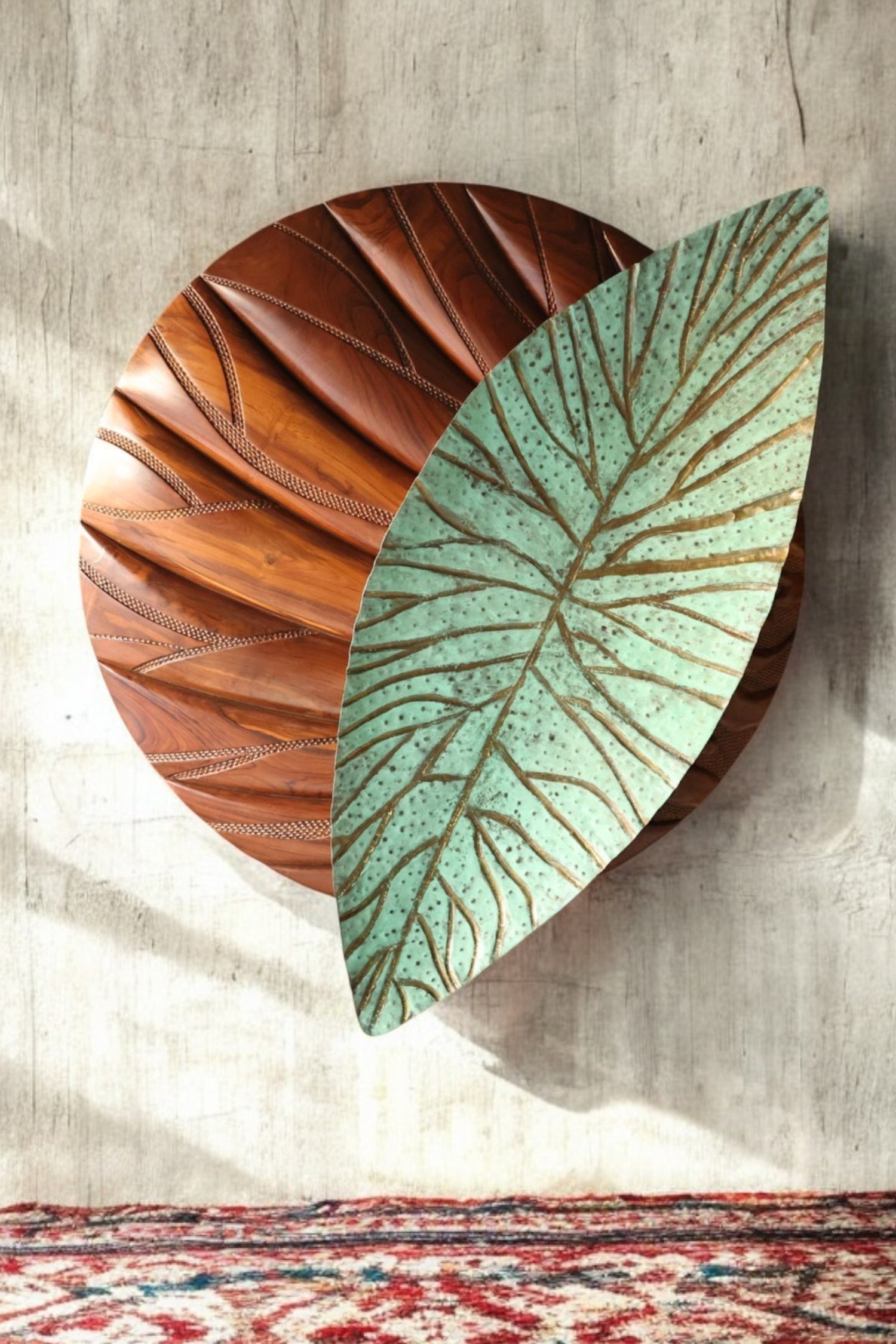 Like a leaf drifting over rolling terrain, Valtara captures the movement of nature and blends the warmth of sculpted wood with the cool allure of patinated brass.